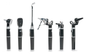 Labtron's Complete Diagnostic Kit comes complete for evaluation of eyes, nose, and throat. The durable, ergonomic handle equipped with an LCD screen indicating brightness level and battery life is designed to fit all 6 devices. The LED Bulb's brightness is controlled with a dimmable rheostat.